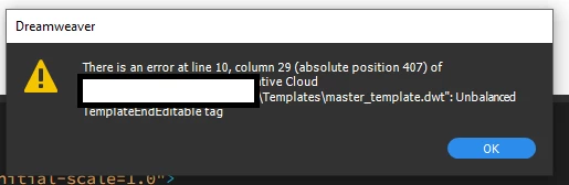 Using the current version of DW2021 - as there is no later version available - I'm currently experiencing the UnbalancedTemplateEndEditible tag error, except there are no unbalaned tags. Looking at the screenshots below, can anyone here see an "unbalanced" end editibable tag?
