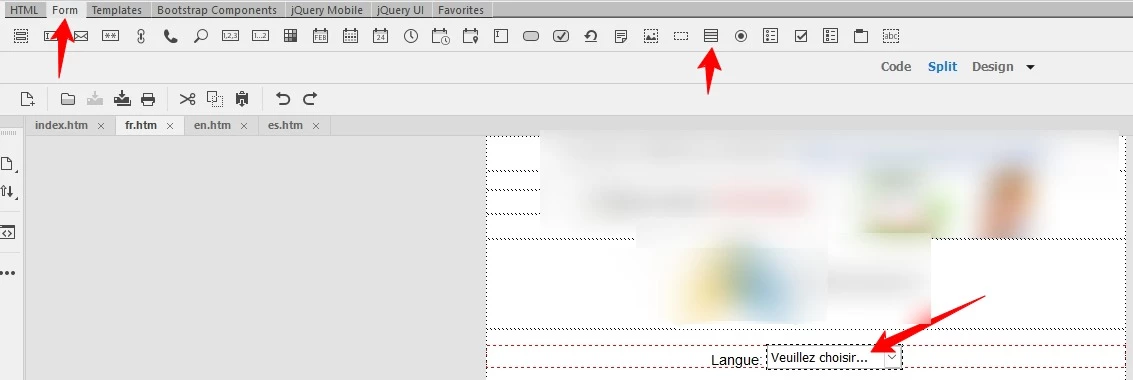 2. Insert the Form > Select Menu item