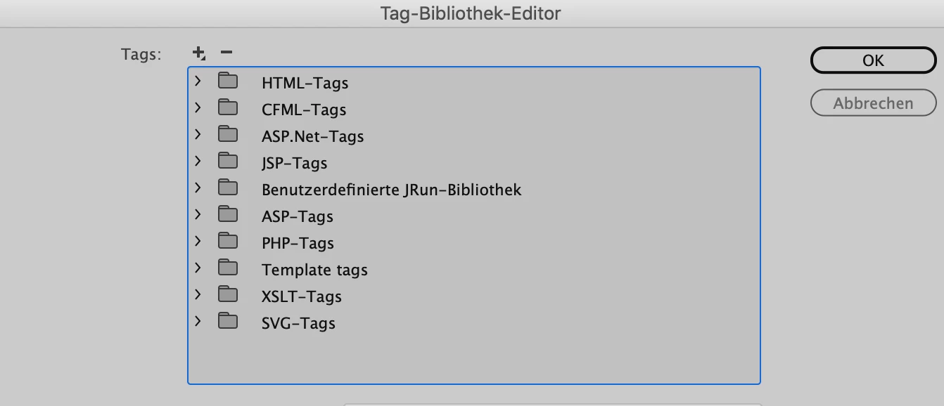 [DW 19 on macOS] No category CSS in the tag library editor: How to configure the format?