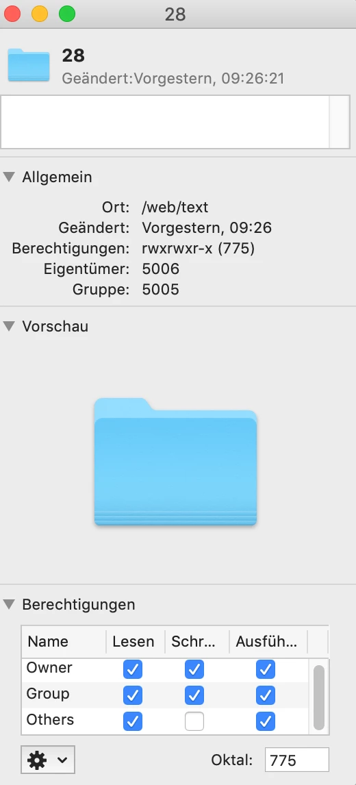 "Probably there's a problem with the rights of the folder /text/28 "