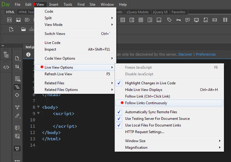 DW CC Live View does not give precisely what I was expecting and WampServer used to test is far from being perfect