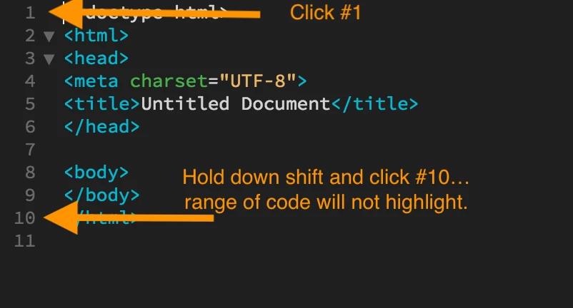 I click on the line # for the end of the range of code and it just highlights that line of code. DW seems to ignore the fact that I'm holding down the shift key and doesn't highlight the range of code between the two line numbers.
