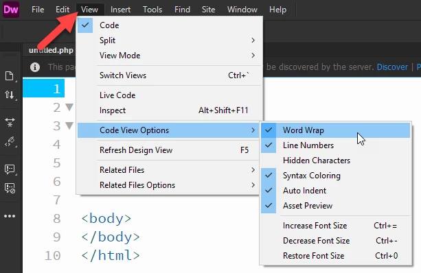 Dans Dreamweaver cc21.0 est-ce qu'il est possible d'empêcher les retours àç la ligne automatiques dans l'éditeur de code ?