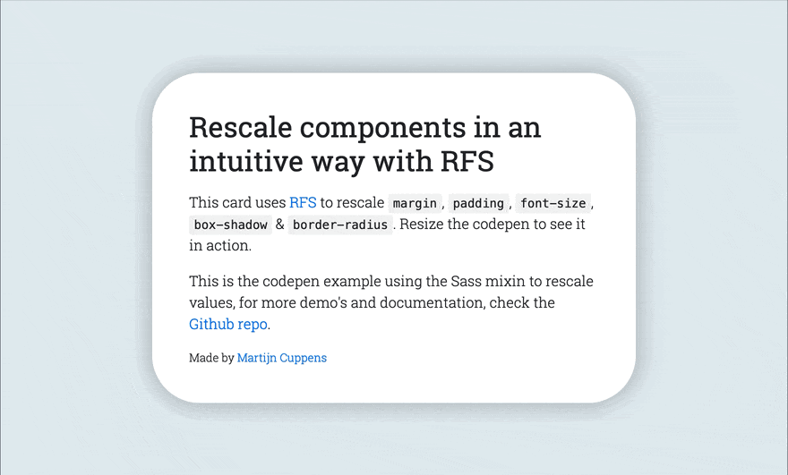 There's a better example of a RFS gif at the link below (scroll down to about the middle of the page): The one on code-pen is deliberately set at a small max-width of only 540px which makes the technique look better than what it really is.
