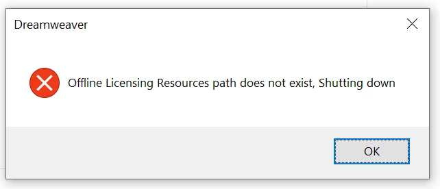 Error when launching DW 2020: Offline licensing resources path does not exist. Shutting down