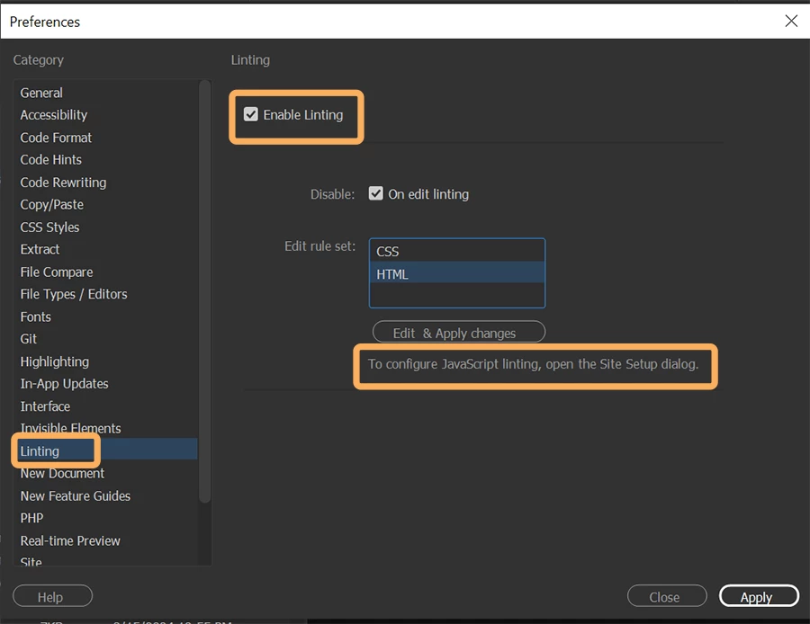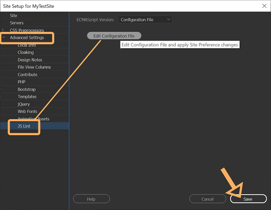 ESLint javascript dreamweaver error