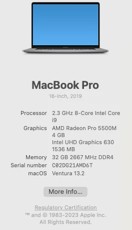 I use a MacBook Pro, attached is a screenshot of my Mac's About Page for your convenience.
