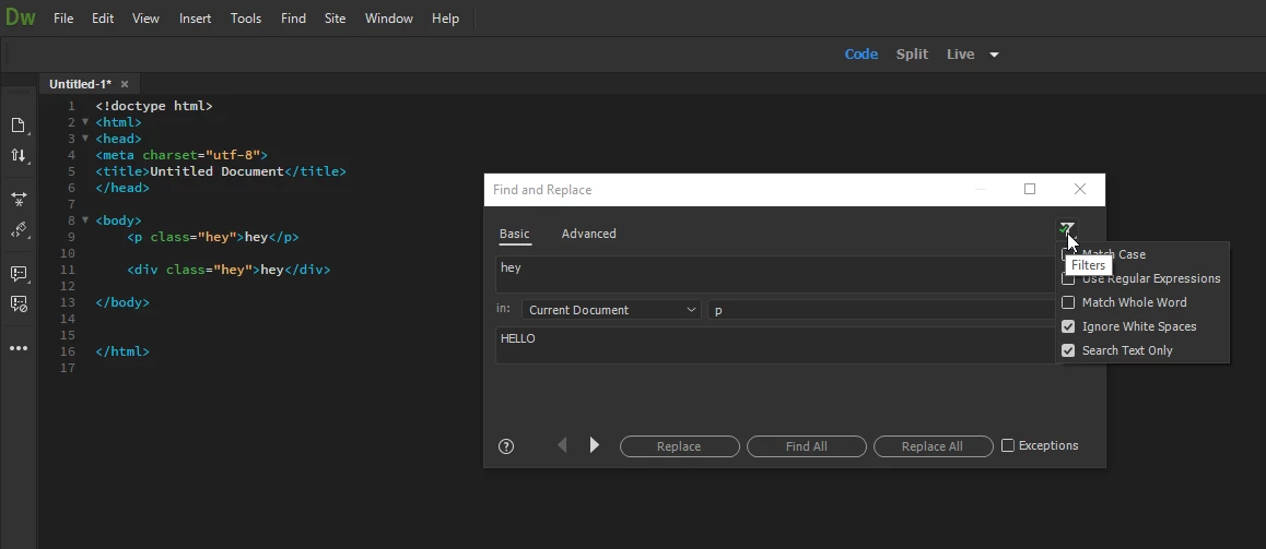I cannot figure out a way to use advanced search to do what I used to do with it; namely make code changes across my site quickly and easily. If anyone can help me figure out how to replace only the matched text within a tag found through advanced search, I will be truly grateful.