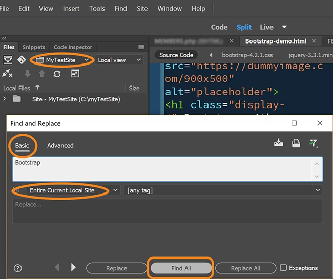 - I open Dreamweaver, and use the feature for the whole local site.