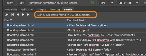 No matter what I do within Dreamweaver after this, the search returns zero results.