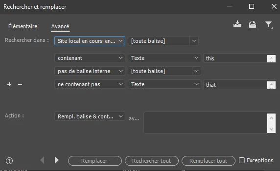 Alternatively, I could search for a document (not a specific tag) that [contains] x AND [does not contain] xx but I can't see how to do that either only if both parameters are within a specific tag.