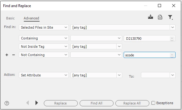 Hello community, I hope you can help me with an issue I am having with Dreamweaver Find and Replace.