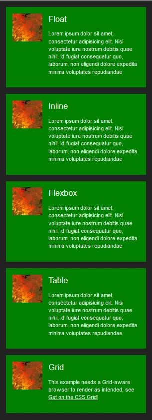 Float, Inline-block, Flexbox, Table and Grid - which one?