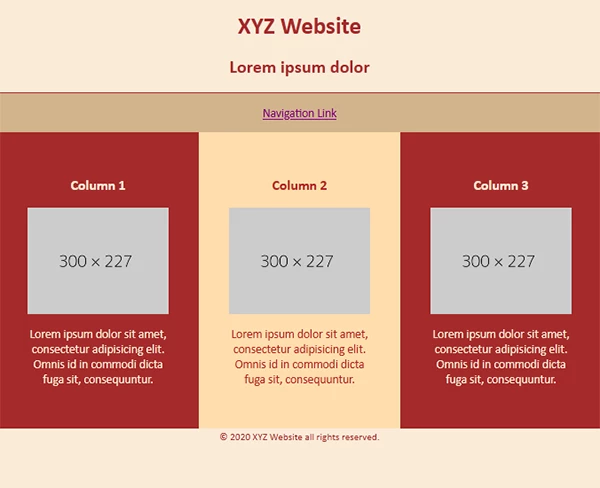 <footer> <small>© 2020 XYZ Website all rights reserved.</small>