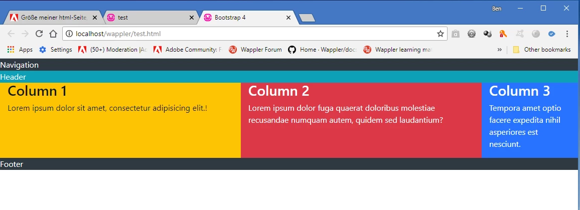 Am liebsten würde ich eine Größe festlegen, die sich an die Fenstergröße anpasst. In der Entwurfsansicht während der Bearbeitung ist das auch der Fall - nur in der tatsächlichen Darstellung am Ende nicht. Es sollte also quasi immer so aussehen, wie im zweiten Screenshot. Was kann ich da machen? / Would like to have it 'always' sized as shown on the second screenshot, independent of the screen's resolution. But how to do?
