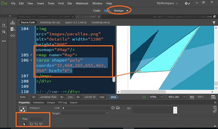 Having problems making hotspots on an image in Dreamweaver