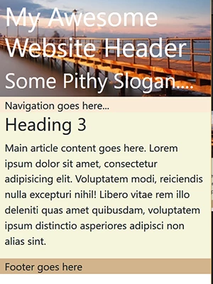 Below is my basic layout that I'm trying to style. I thought I was making some progress until I tried to add an image as a background in my header. It shows up in the header and the footer. Is that because they both have a class that says "col-sm-12" Do I need to change the name on a class? And what about the fact that I have a lot of div that says class=row? The video looked the same as my html except for being a fluid container.
