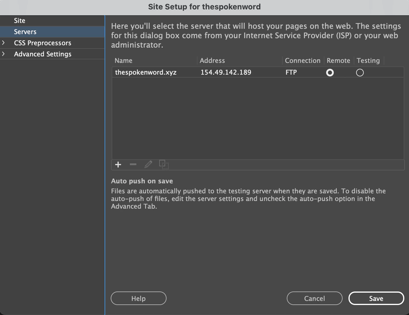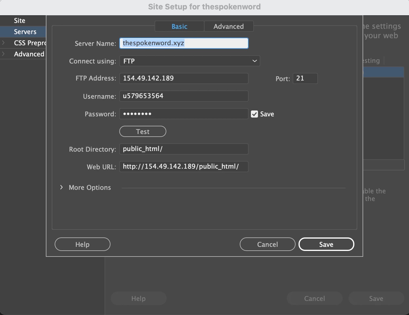 Now I notice that my site name is thespokenword and yet the Server Name is thespokenword.xyz. Is that the problem?