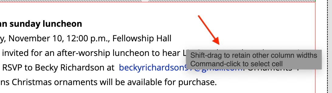 1. Click the upper left corner of your layout table to get the blue table tab to appear.