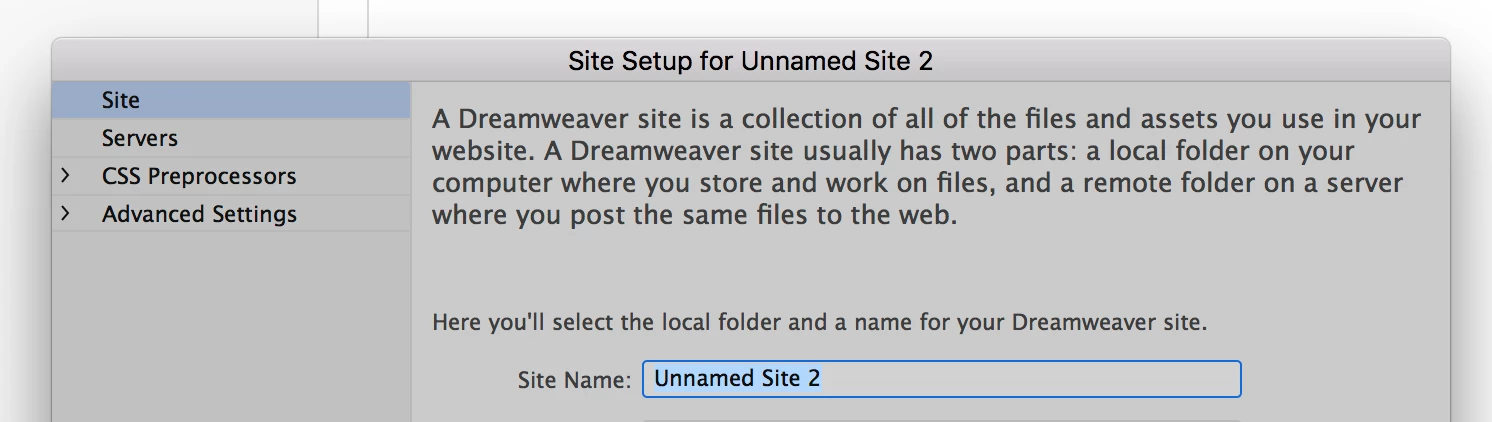 I am using CC2018. I have chosen the color theme "Light". All colors throughout are fine and the way I like them while writing code EXCEPT in one place. When I go to the DW interface itself to set up a new site, for example...SITE >NEW SITE>, the data entry field highlight color is so light that I am having trouble seeing what I am highlighting. Can I change just this one color to a darker color. I know I can customize a theme, but it is way over my head finding what to change and how. I have gotten as far as being able to copy the "Light" theme and make a "new editable" theme from it, but don't know where or what to change to make this one color darker. Any help would be appreciated. I have attached a sample where the "site name" field is highlighted in the default color.