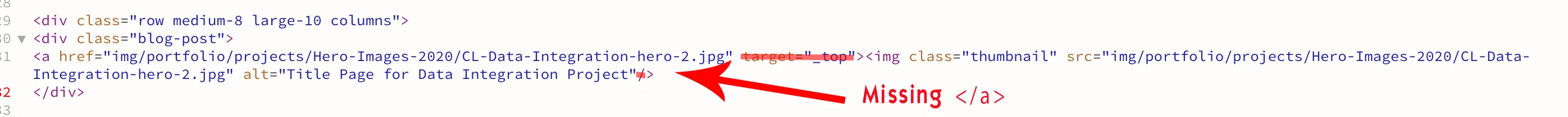 After updating Dreamweaver, my paragraphs in my html files are now surrounded by an <a> that connects to the linked image above the text. This tag isn't written into the code, but when you hover over the text in Live View, it shows as a gray box. The extra code is showing up on my live website, creating links where they shouldn't be, and it has to go. Please help!