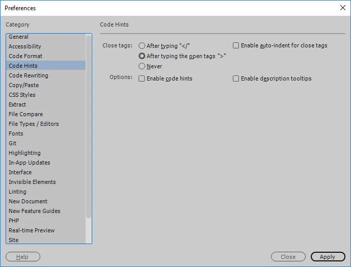 c. next, go to Adobe > Dreamweaver CC 2018 > your language > Configuration > Brackets > brackets.json