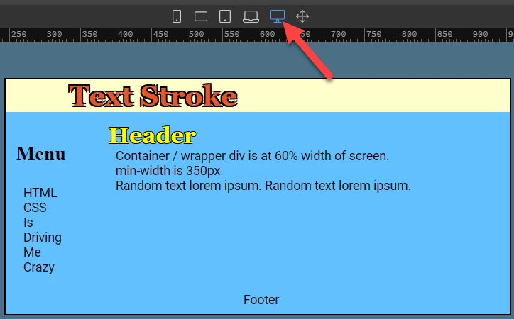 <p>Container / wrapper div is at 60% width of screen.<br>