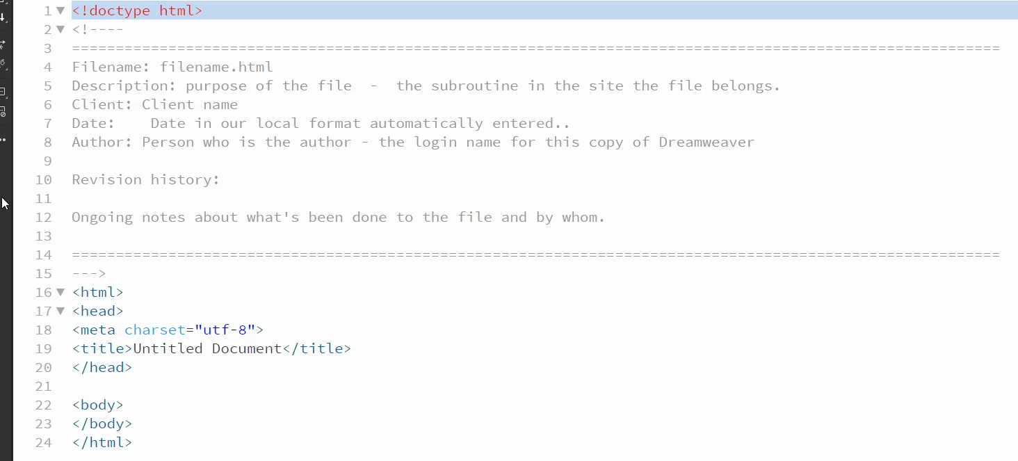 For example, a new HTML file would have the forllowing as the first few lines of the file as part of the default code: