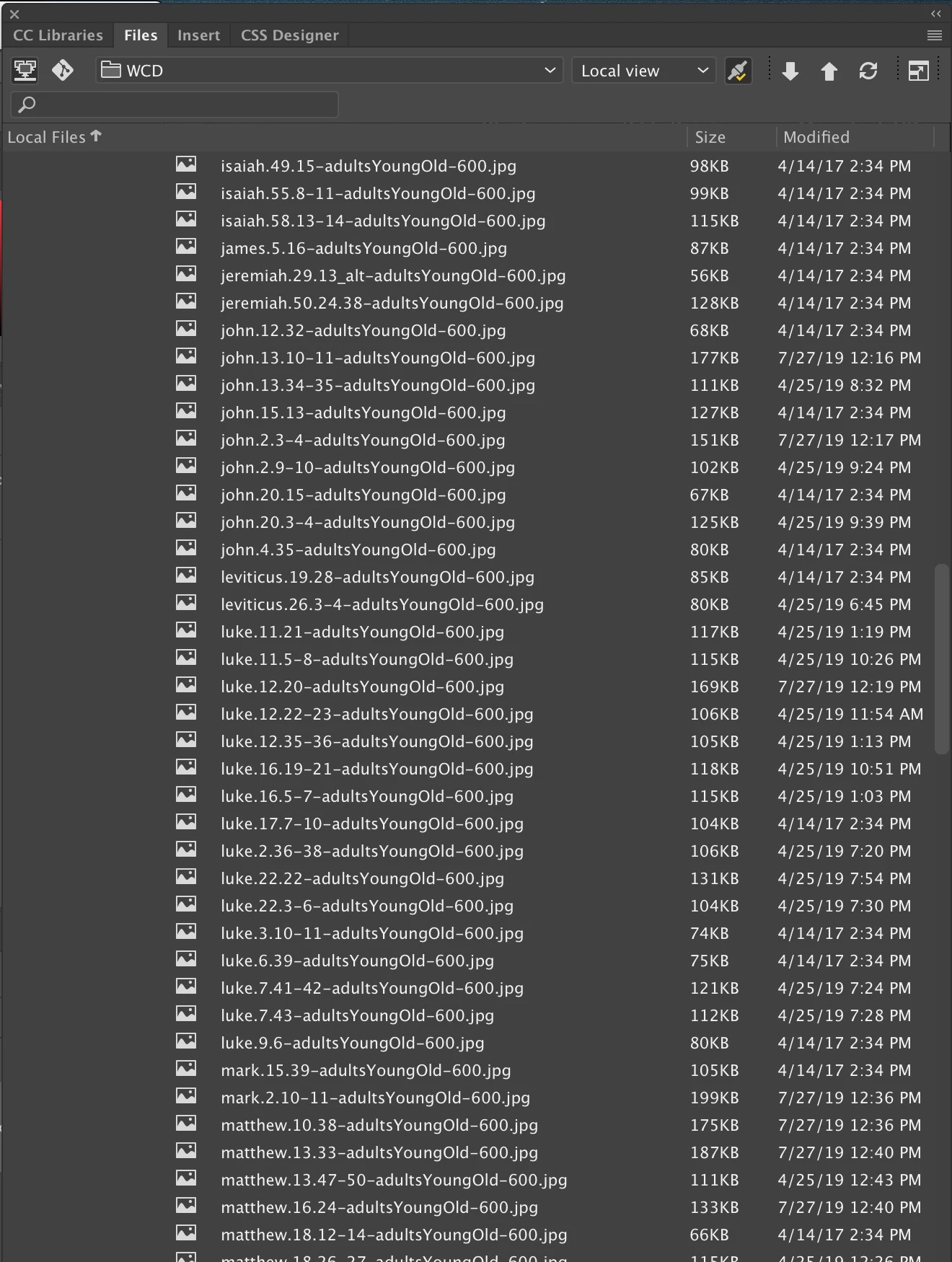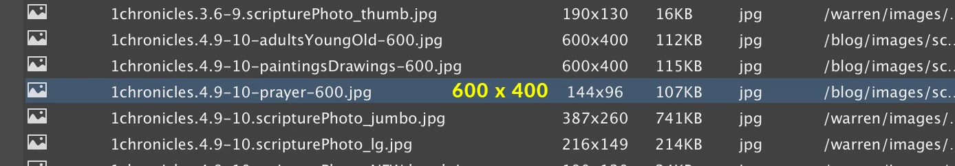In addition to the KB Size of my image files, I need to learn how to reveal the width and height of images that appear in the Local Files list, as shown in my screenshot. . .