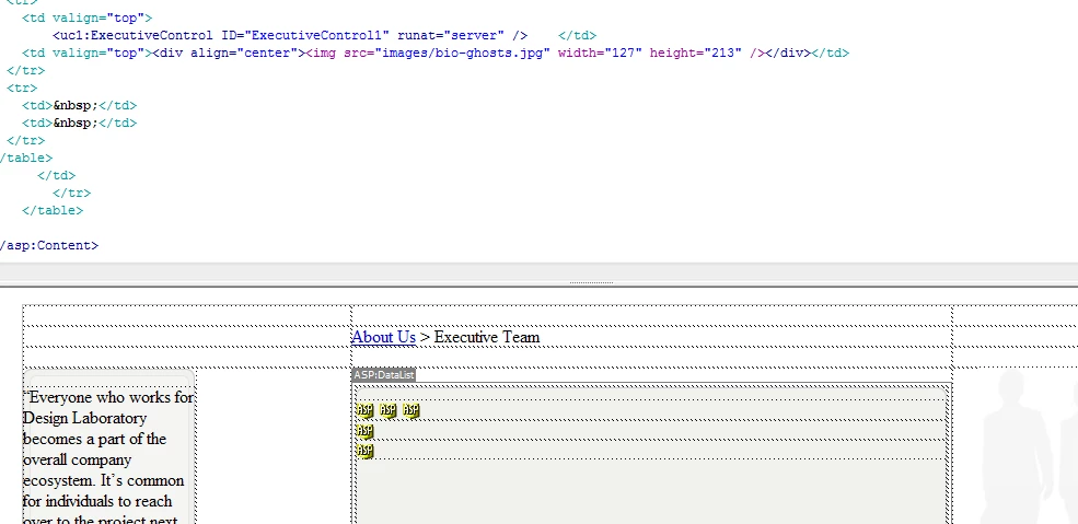In the executives.aspx file, the above mentioned text (15 plus) is not find-able. In this file, it appears that the text would live here