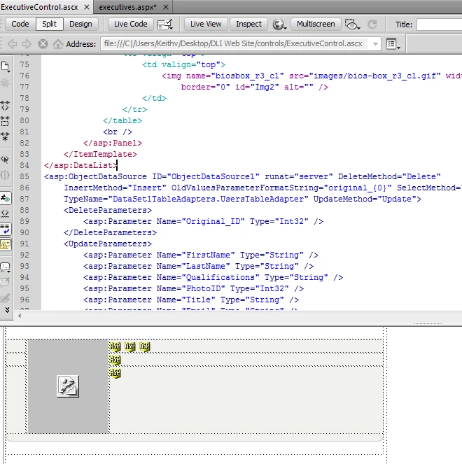 In the ExecutiveControl.ascx file, see asp tags, but don't see how to edit them