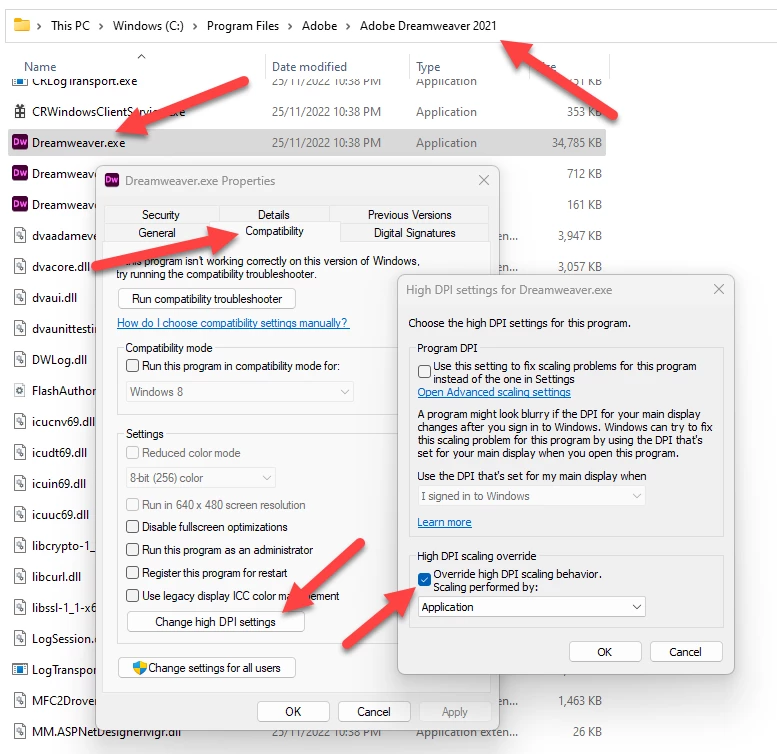 How to enable High DPI Scaling in Dreamweaver 23