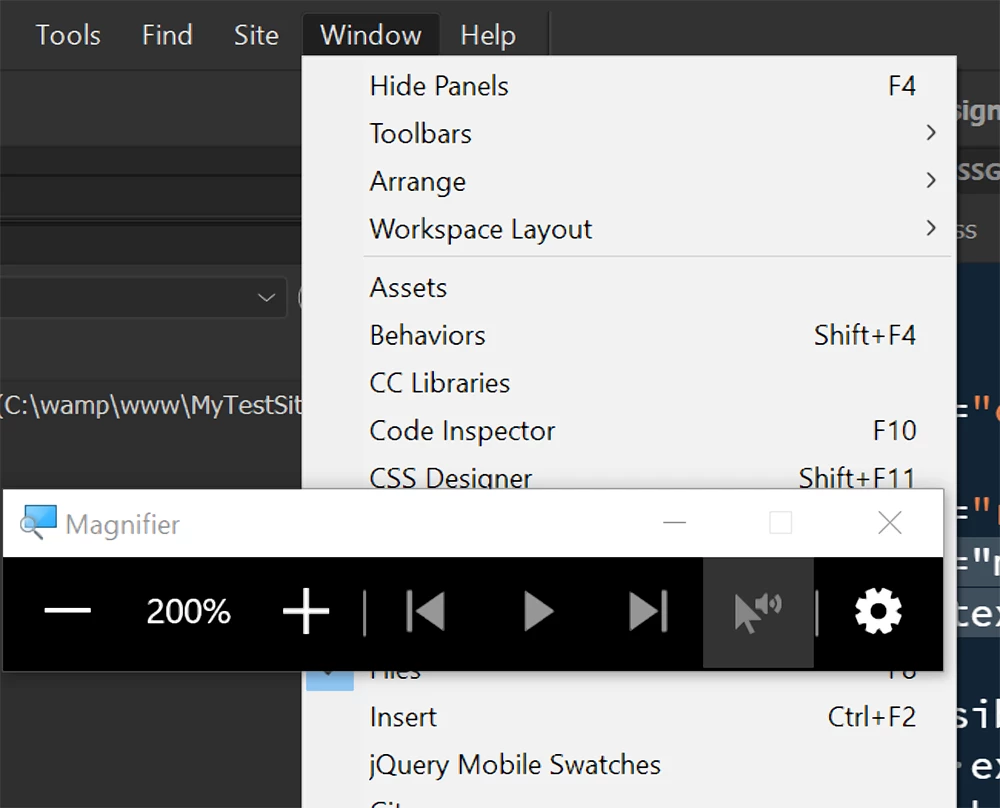 This is missing in Dreamweaver and my main menus are VERY small
