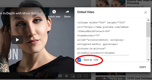 How to insert a new HTML 5 video that starts at specific time when video is played?
