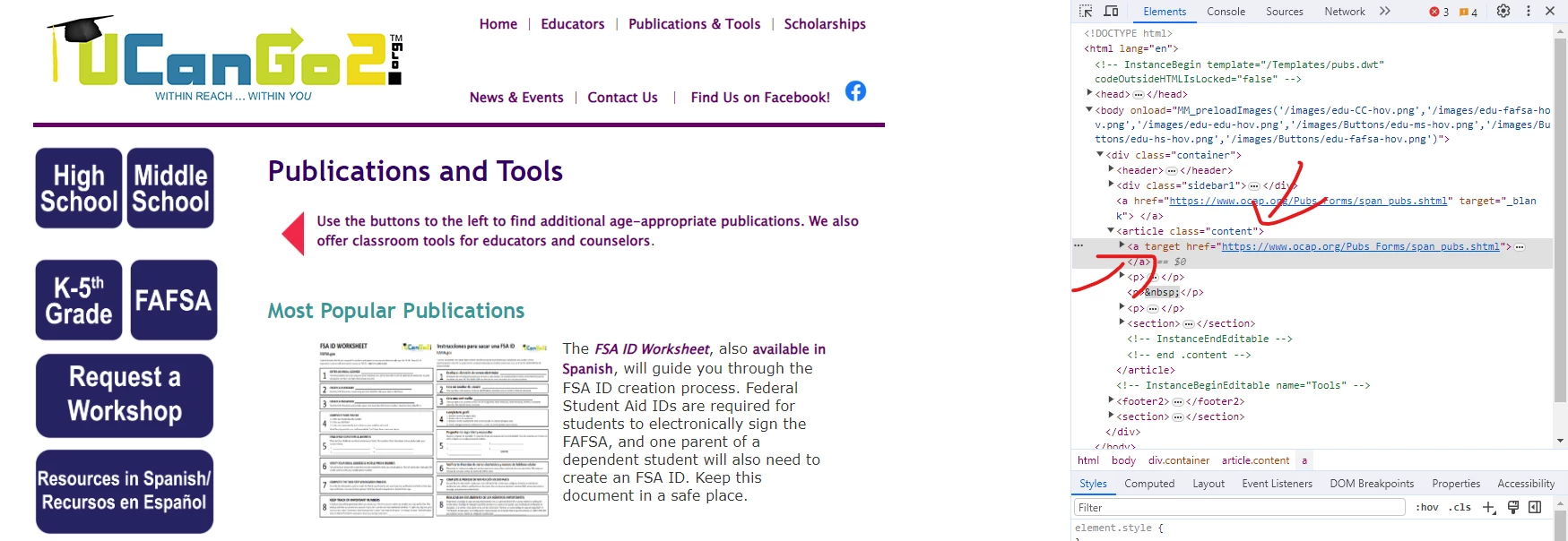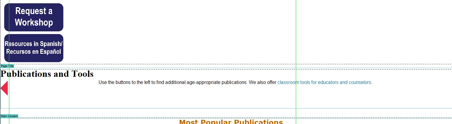 This is an admittedly older site/design so that should be understood. But on this website https://www.ucango2.org/Publications.html you can see how the headline (Publications and Tools) and subheading (Use the buttons...) are linked to a specific page. This is not the intended setup within Dreamweaver. They are linking to a site referenced on the left column of links (last link).
