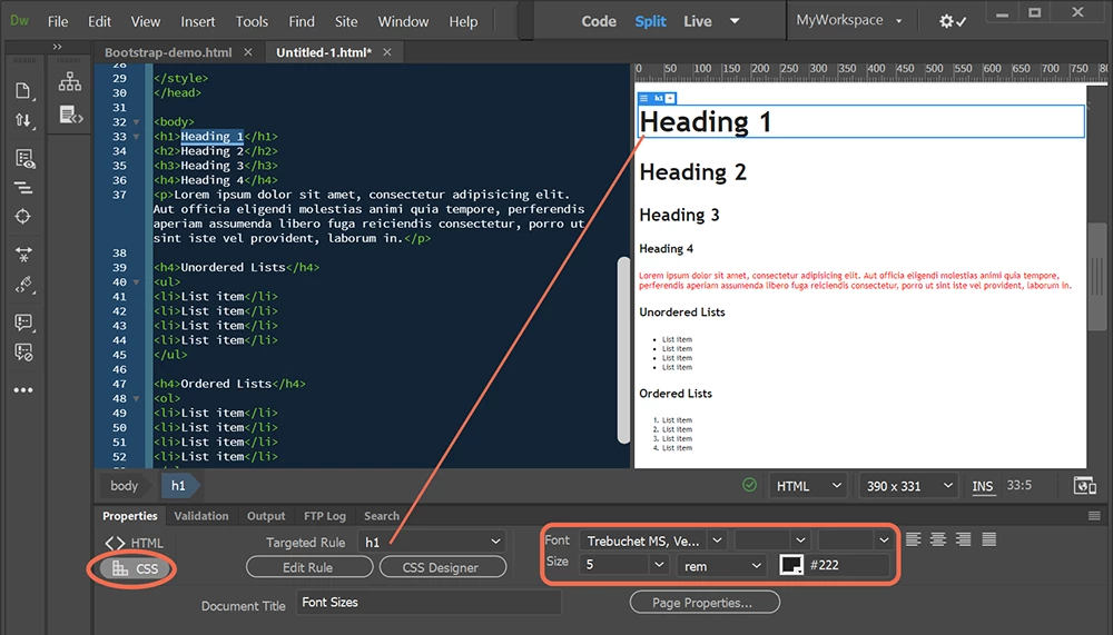 How to set up Properties for font size