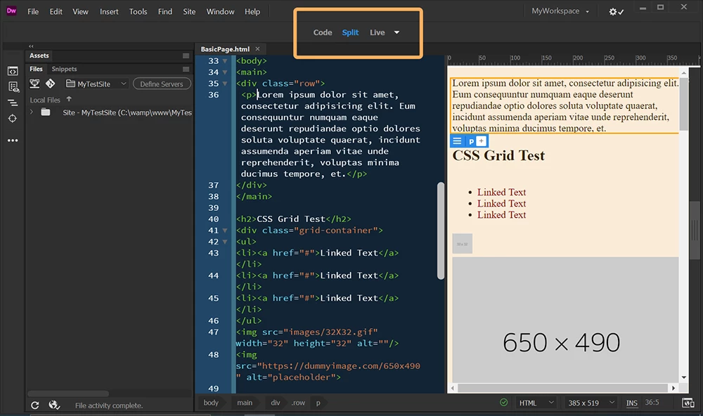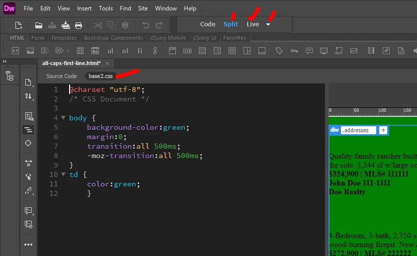 I can't do a split screen on a dreamweaver CSS file? ( I have never worked with dreamweaver before)