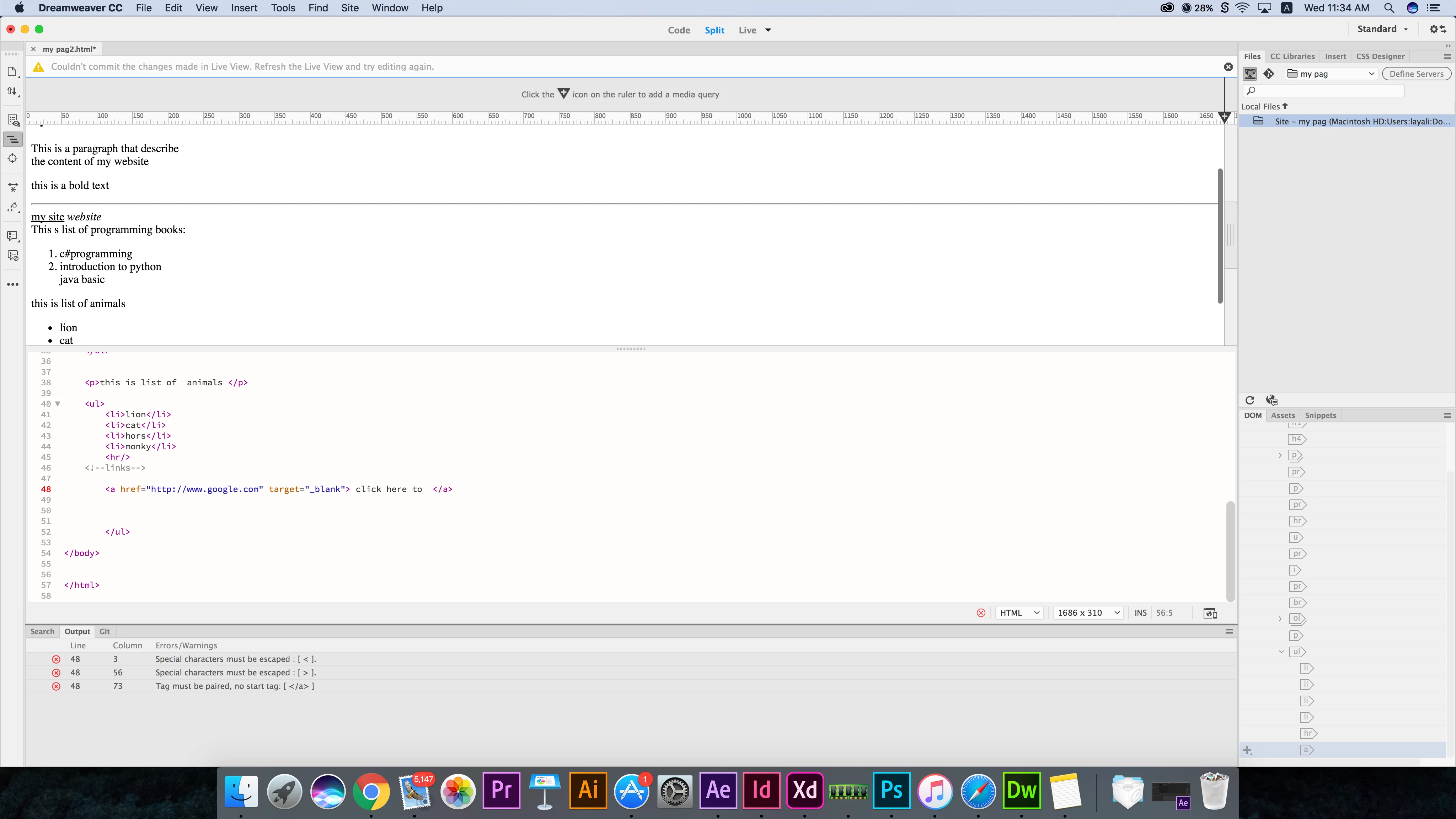 Your <hr> and <a> tags need to be moved either outside of the <ul></ul> tagset, or into one of the <li></li> tagsets.