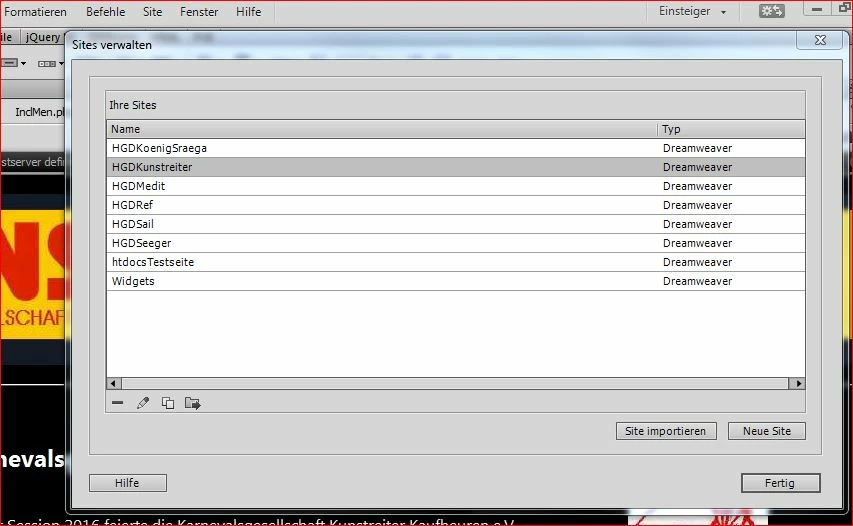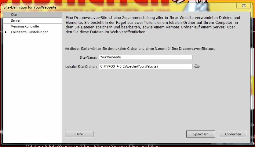 .... first an addition to Jon's help about "Site Definition" (see screenshot of my German DW):
