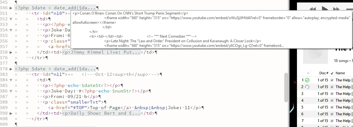 Notice the popup piece of code. It appears above all DW windows and Firefox tabs such as the one I'm in right now. Nothing under it can be reached without moving the page up and down. Several tabs are open in DW, but this piece of code isn't selected on any of them. The popup appears on every tab, however.
