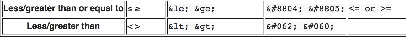 Inserting a greater than-equal to sign in Dreamweaver 2017