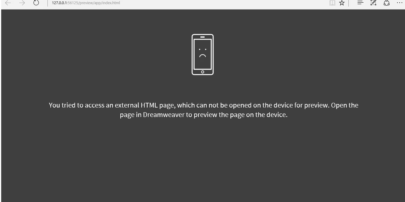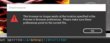I tried that in multiple browsers (Mozilla & Microsoft Edge) and got the exact same result. When I tried Real-Time Preview with Internet Explorer instead I got a really weird pop-up message about being the correct file...but the Browser and actual HTML file's there. Anyway here's what it said: