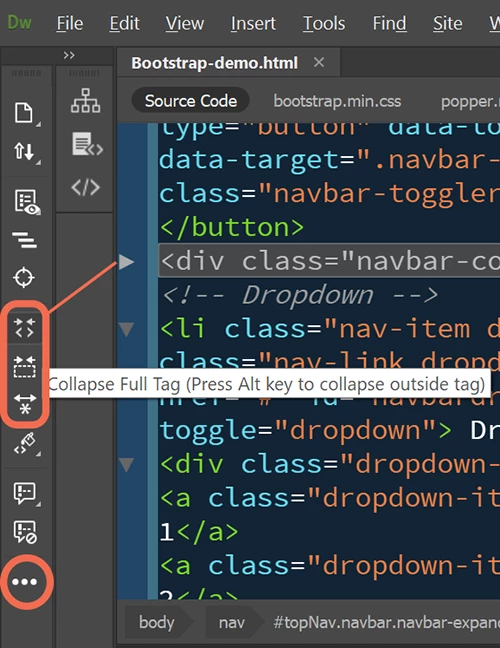 No. Collapse Full Tag and Collapse Selection are the closest we have. They are on the Common Toolbar. If you don't see them on your toolbar, click on the 3 dots icon to expand Common Toolbar options.