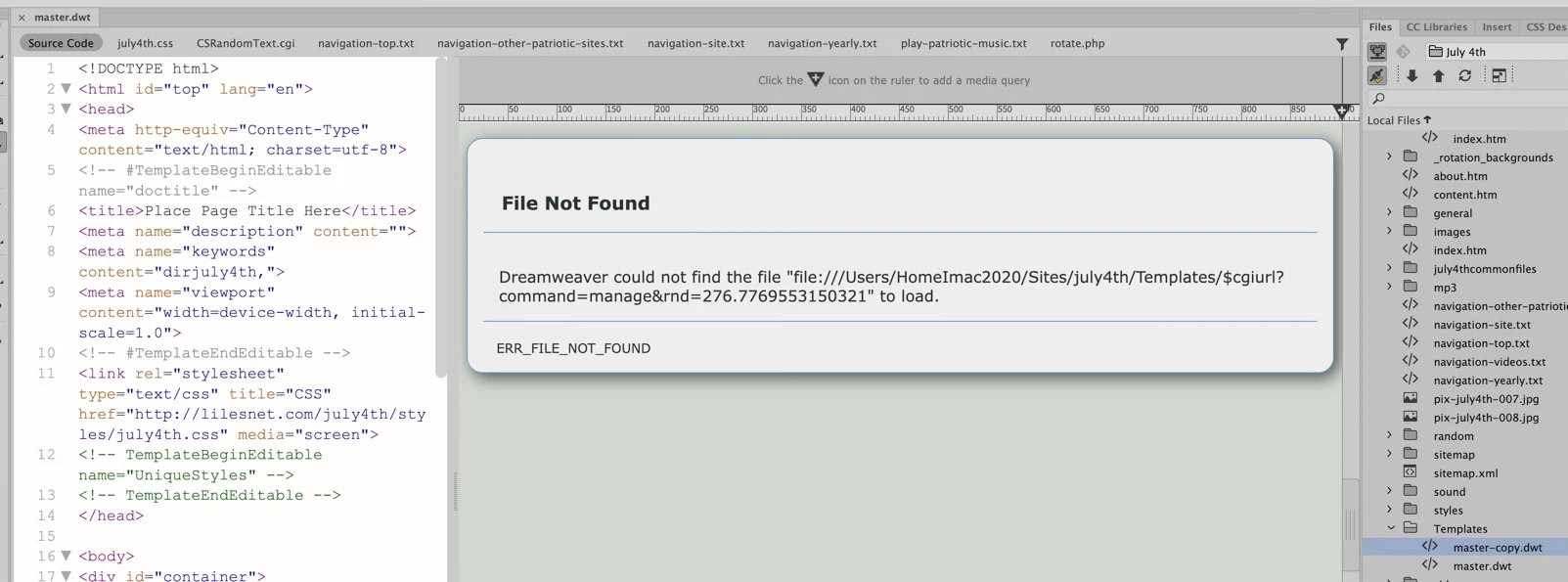 All of a sudden, I get this funny error message, but the file exists locally and on the server. I have deleted it and reloaded a new copy, and get the same thing? I am now sure what to do next!!