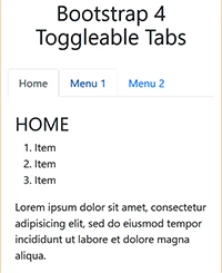 <h2 class="text-center">Bootstrap 4 Toggleable Tabs</h2>