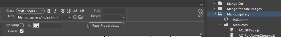 Works fine in real time preview. Using DW CC 2018 on mac. Have taken over this site for a family member, I am a beginner at DW. I made sure that the correct file is linked for this web gallery. The link is Mango_gallery/index.html. the real time preview address is http://127.0.0.1:49393/preview/app/index.html