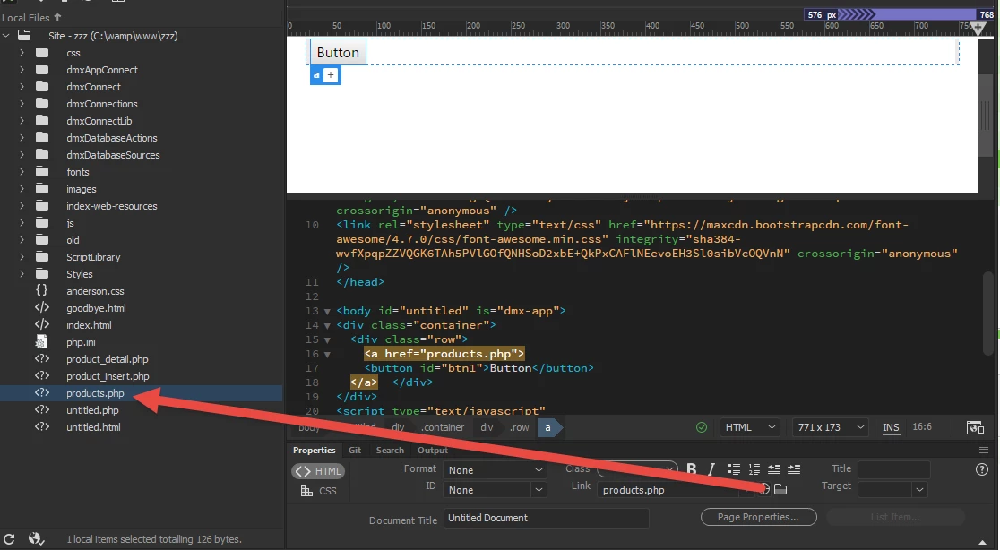 I try to add a link via Live-View to a bootstrap button by clicking the "link" sign (chain). Then add the page the link should lead to.