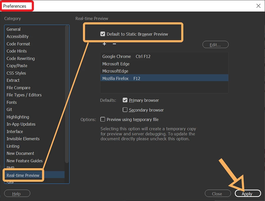 I'm struggling with a problem in Adobe Dreamweaver where the live preview fails to automatically update when I make changes to CSS media queries. I ensuring the correct configuration in settings, Software update, clearing browser and Dreamweaver caches, and testing on multiple projects, the preview does not refresh to show changes unless I manually reload it.