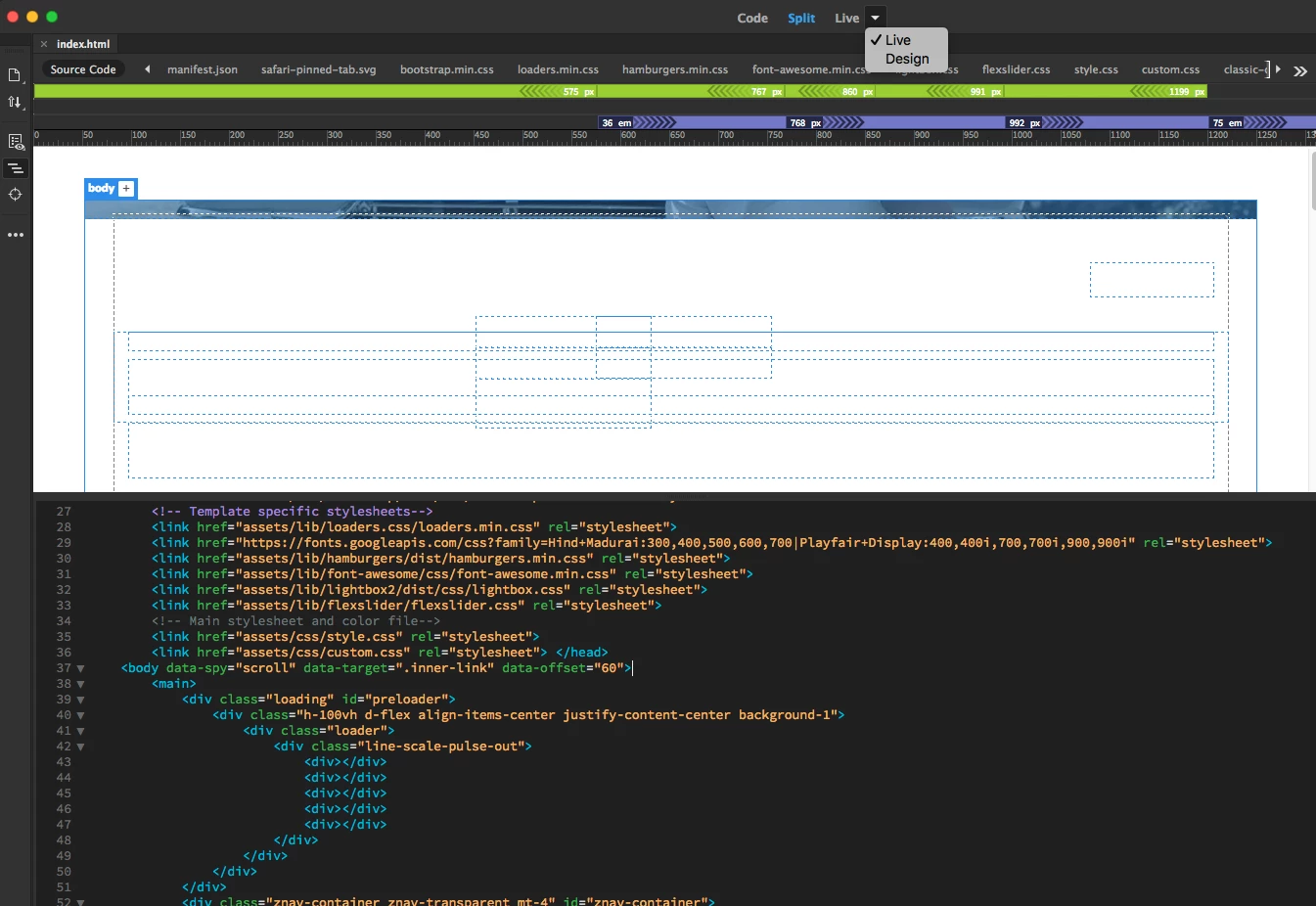 I have a layout that uses a HTML5 bootstrap theme. On my old workstation dreamweaver shows everything fine, however, my new Mac with dreamweaver shows the layout when I refresh the view with F5, then changes to showing dotted lines and div shapes.