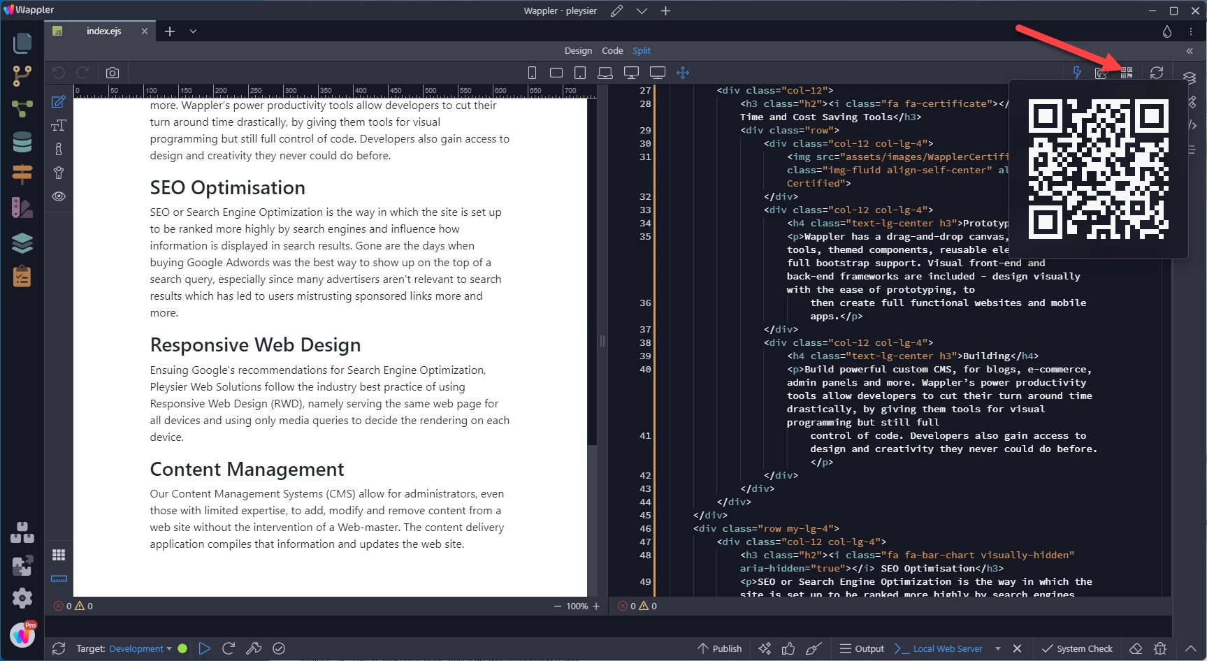 Following an Adobe tutorial it mentions scanning a QR code with my iPhone to see the responsive web page that I am creating. My panel is blank. No QR code or browsers listed. I can see both browsers listed in preferences. I can view in a browser and see it change if I alter the width of the screen. I hope that it is still possible to see on different devices in real time.